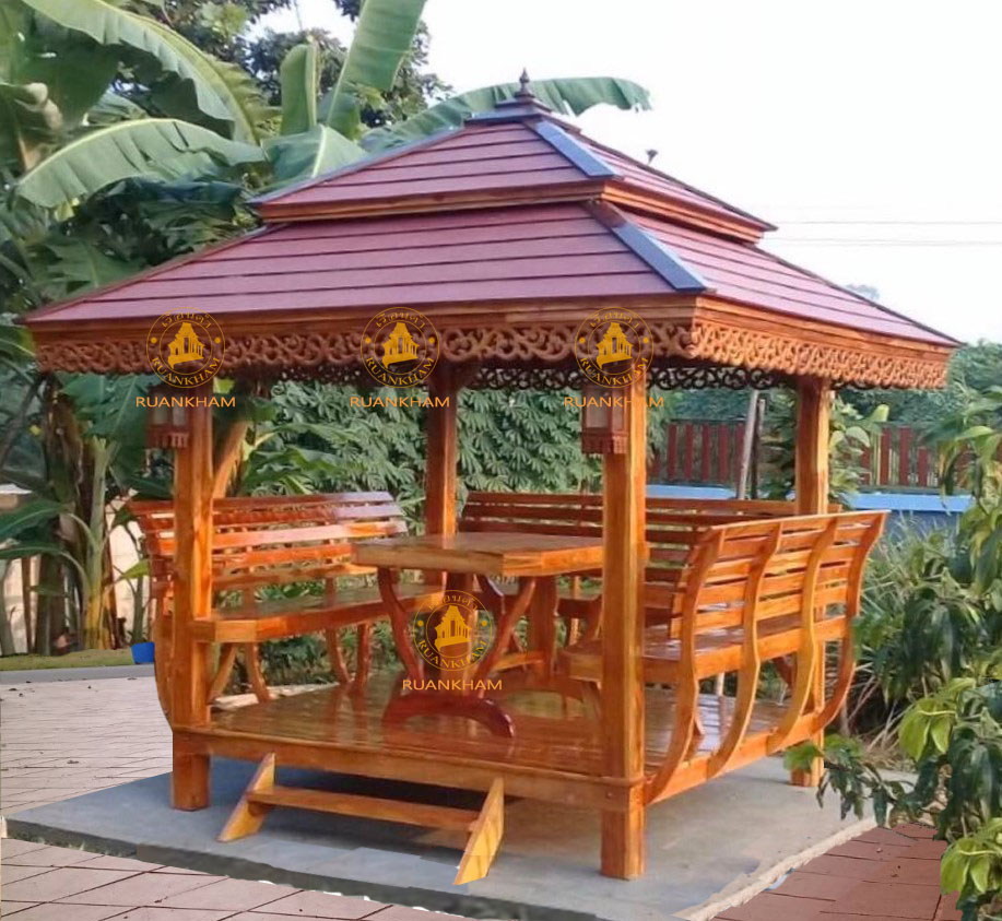 ( รหัส A4 ) ศาลาไม้สัก สีเงา หลังคาสีน้ำตาล ทรงอโยธยา รหัส (A14) 4-YB ขนาด 2.00x2.00x3.00 เมตร